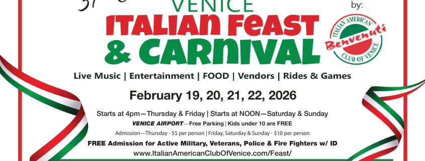 It is officially time for one of my absolute favorite local traditions! Starting today, February 19th, through Sunday the 22nd, the Venice Airport Festival Grounds are transforming into a little slice of Italy right here in Florida.